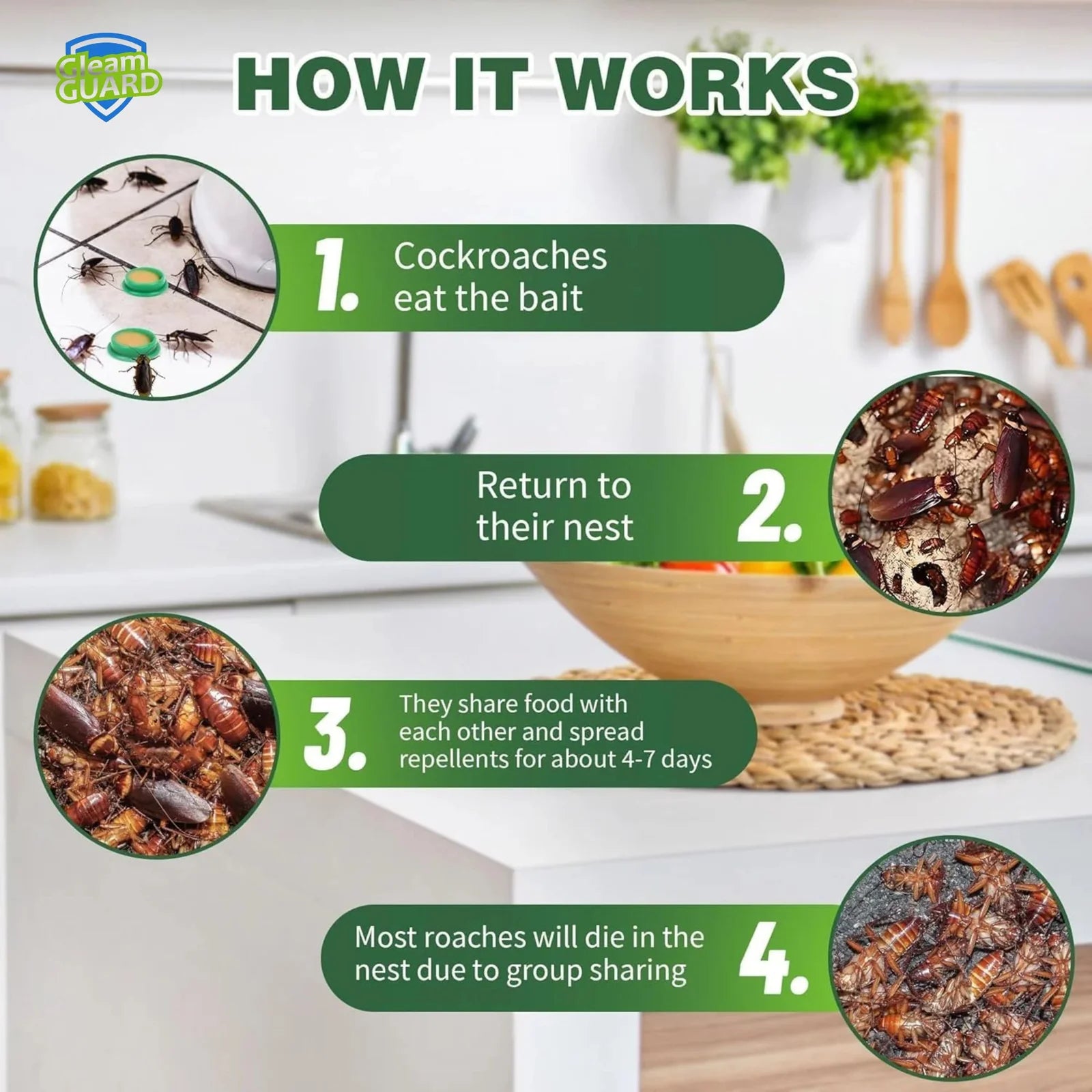 🔹 Attracts & Eliminates: The bait formula lures roaches out of hiding. Once consumed, it works its magic, spreading to the entire colony for a thorough cleanup.